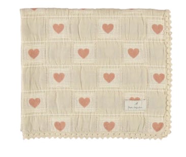 愛らしいジャカード模様のハートが特徴のパッチワークブランケット