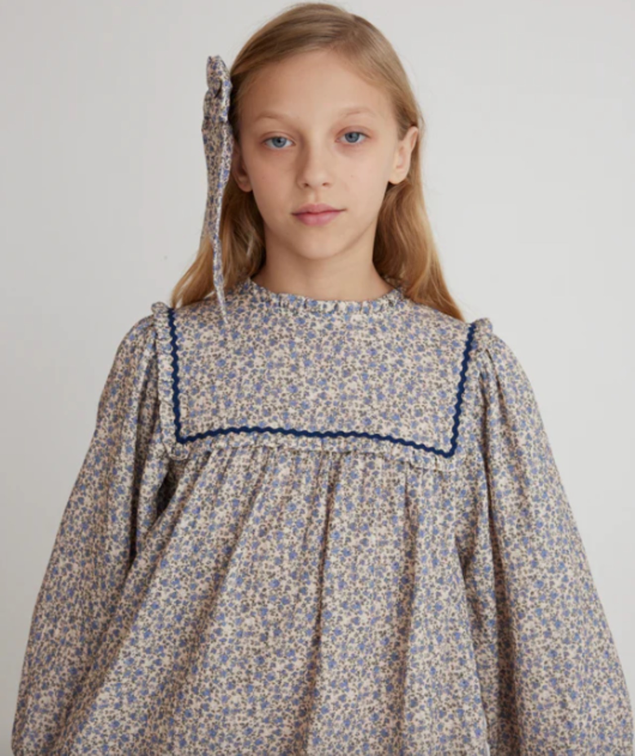 胸元と襟元にあしらわれた優しいフリルのディテールとバルーンパフスリーブが、上品で快適な着心地を演出します。カルロッタの大きなリボンと相性抜群です。