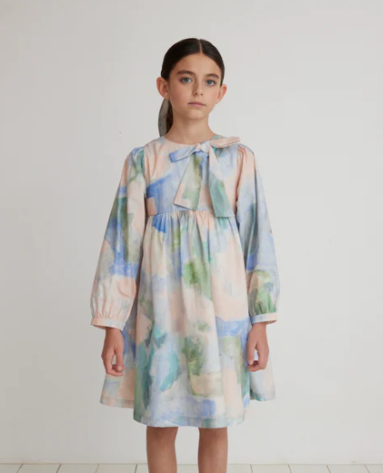 ロマンチックな夢の世界にインスパイアされた、いつまでも愛らしいアリッサの大きなリボン。上質なコットン生地に秋の水彩画のようなプリントを施し、手結びで丁寧に結ばれています。ワニ口クリップで留めるデザインです。時代を超えたリボンが、どんな装いにもエレガントさと魅力を添えます。アリッサのドレスと相性抜群です。