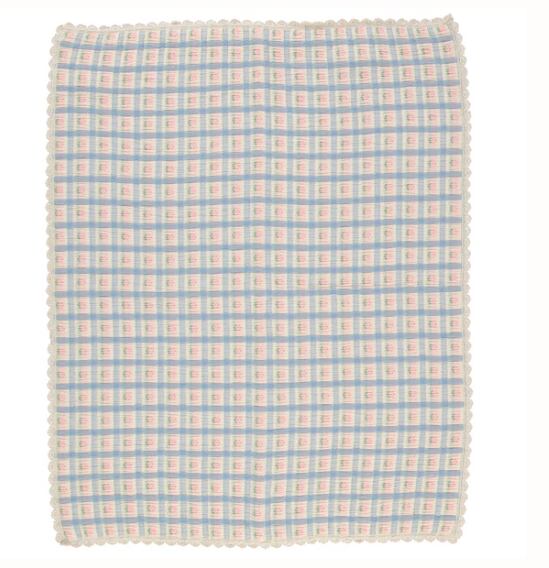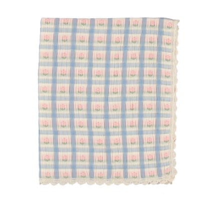 秋の定番、Zoraブランケットは、綿混紡の中綿素材で仕立てられています。ノスタルジックなフラワーチェック柄のこのブランケットは、縁にエレガントなレースのディテールが施され、敏感肌にも優しく、とても柔らかです。