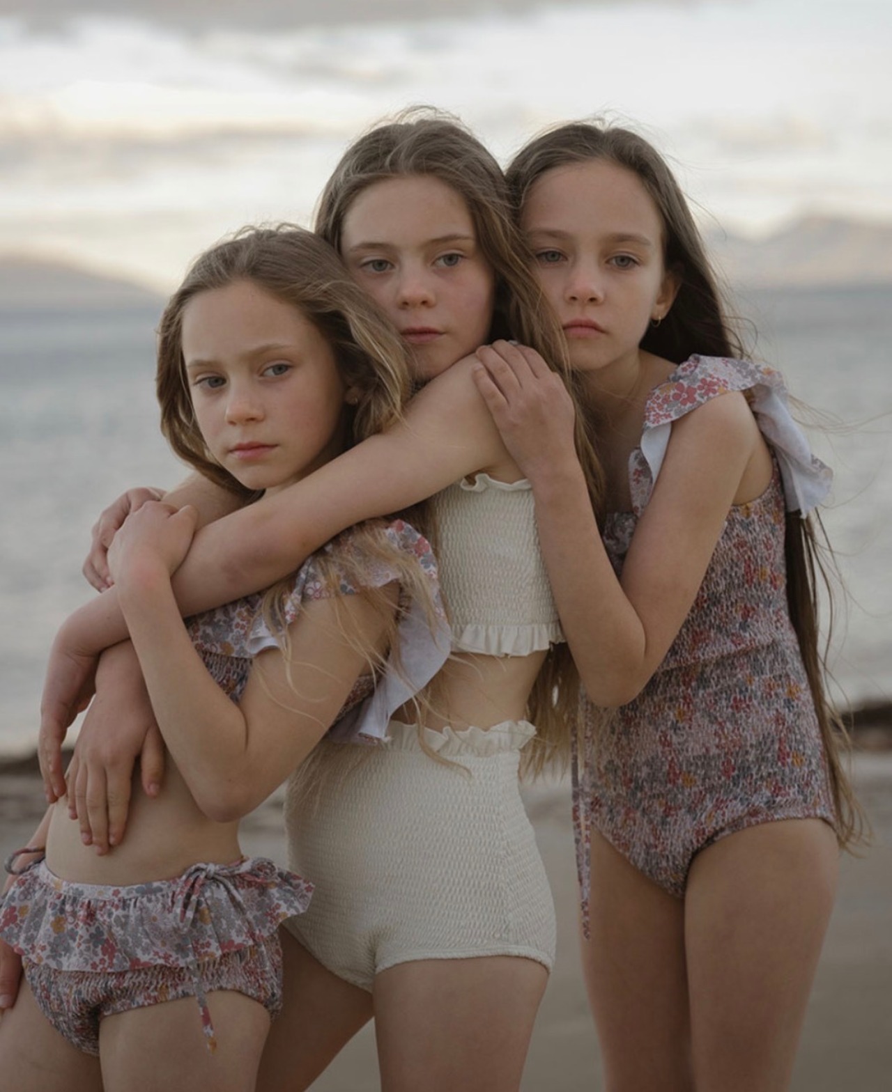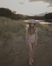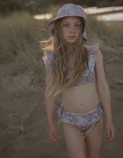 このビキニは、田園地帯の牧草地の魅力にインスパイアされた、手描きのデイジーと小さな花々が咲き誇る、全面に花を咲かせます。柔らかなブルー、温かみのあるイエロー、そして優しいレッドの色合いで、この柄はフランスの熟練職人によって特別に描かれ、遊び心とノスタルジックな雰囲気を、小さな水しぶき一つ一つに感じさせます。